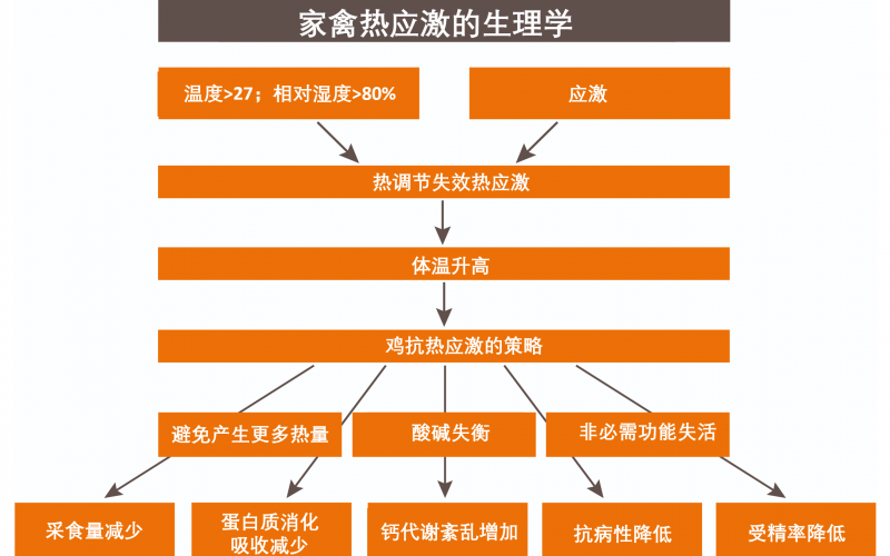 Ö÷ÒªÔµ¹ÊÔÓÉÓÐÁ½¸ö£ºÒ»¸öÊǸơ¢Á׺ÍάÉúËØDµÄÉãÈëÁ¿ïÔÌ£»ÁíÒ»¸öÊÇ´úлµÄÔµ¹ÊÔÓÉ£¬¸ßÎÂÌõ¼þÏ£¬¼¦µÄ¼××´ÏÙËØÉøÍ¸ïÔÌ¡£¼××´ÏÙËØË®Æ½µÄÆéá«Ö±½ÓÓ°Ïìг´úлµÄËÙÂÊ£¬¶ø´úлËÙÂÊÊÇÓ°Ï켦²úµ°ÐÔÄܵÄÖ÷ÒªÒòËØÖ®Ò»£¬ÒÔÊǸßÎÂÒýÆð²ÉʳÁ¿µÄϽµ£¬½ø¶øµ¼ÖÂÌåÖØ½µµÍ£¬×îÖÕÒýÆð²úµ°Âʺ͵°ÖؽµµÍ£¬µ°¿ÇÖÊÁ¿±ä²î¡£Òò´ËÔÚÑ×Ìì¸ßμ¾½Ú£¬ËÇÑøµ°¼¦µÄÒªº¦ÊÖÒÕ²½·¥Êǽâ¾ö½µÎÂÎÊÌâ¡£