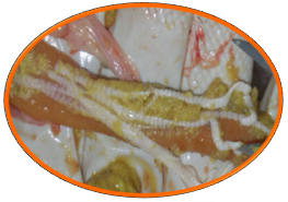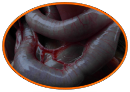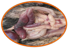 1.3.2ÆÈº¦°¬ÃÀ¶úÇò³æËðº¦Ð¡³¦ÖжΣ¬Ê¹³¦±ÚÀ©ÕÅ¡¢Ôöºñ£¬ÓÐÑÏÖØµÄ»µËÀ¡£ÔÚÁÑÖ³Ìå×ÌÉúµÄ²¿Î»£¬ÓÐÏÔ×ŵĵ°×É«ºÚµã£¬Õ³Ä¤ÉÏÓÐÐí¶àС³öѪµã¡£³¦¹ÜÖÐÓÐÄý¹ÌµÄѪҺ»òÓкùÂܲ·É«½º¶³×´µÄÄÚÈÝÎï¡£