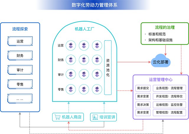 通过数字化劳动力运营平台,快速集成企业原有资源情形,实现企业数字化营业场景和AI能力融合,推动企业数字化劳动力手艺标准的建设,提升企业流程自动化水平;通过数字化劳动力场景集市,实现跨部分、跨区域、跨领域的场景组合复用;通过统一管理门户实现使命行列管理、使命执行的调理、作业断点续作等功效管理与设置,提升数字化劳动力的可管理性、可维护性,从而推感人机协同的数字化劳动力运营系统的建设。通过非侵入式会见系统的模式,阻止了对企业原有IT结构的破损,解决了系统间脱节和断点问题。实现“智能化+自动化+移动化”的企业级数字化劳动力的运营管理支持。