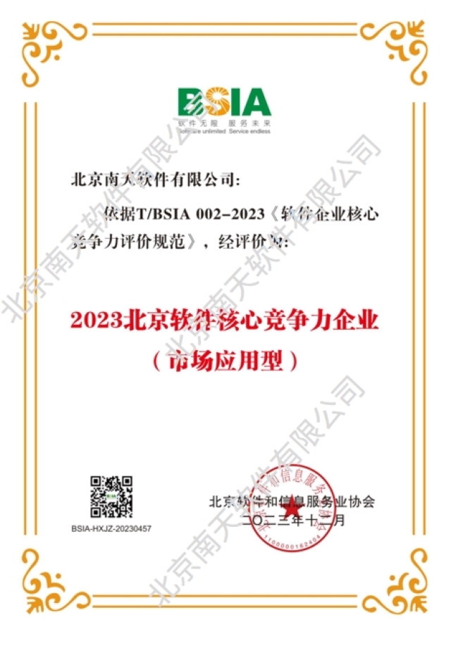 “2023北京软件焦点竞争力企业”榜单评选,依据最新升级的《软件企业焦点竞争力评价规范》(T/BSIA 002-2023)整体标准,针对工业发动力、手艺立异力、市场影响力、营业前瞻性等焦点竞争力,评价出平台赋能型、手艺研发型、市场应用型、营业探索型四大类型企业。腾博tengbo9885官网软件自2019年首届入选后,一连五年荣登“北京软件焦点竞争力企业(市场应用型)”榜单。