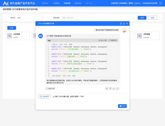 随着金融行业的快速生长,软件开发面临着诸多挑战,如开发情形、手艺栈选型、知识维护、历程管理等。腾博tengbo9885官网信息依附富厚的金融科技行业履历,基于公司自有的“OFP? Prebranch+”开放式金融综合前置平台,推出了WebAE低代码开发平台,并融合AI手艺打造了ChatAE开发智能助手。